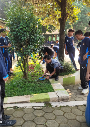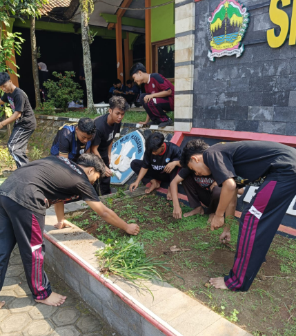 Seluruh warga sekolah, termasuk guru dan siswa, terlibat dalam kegiatan kebersihan ini.